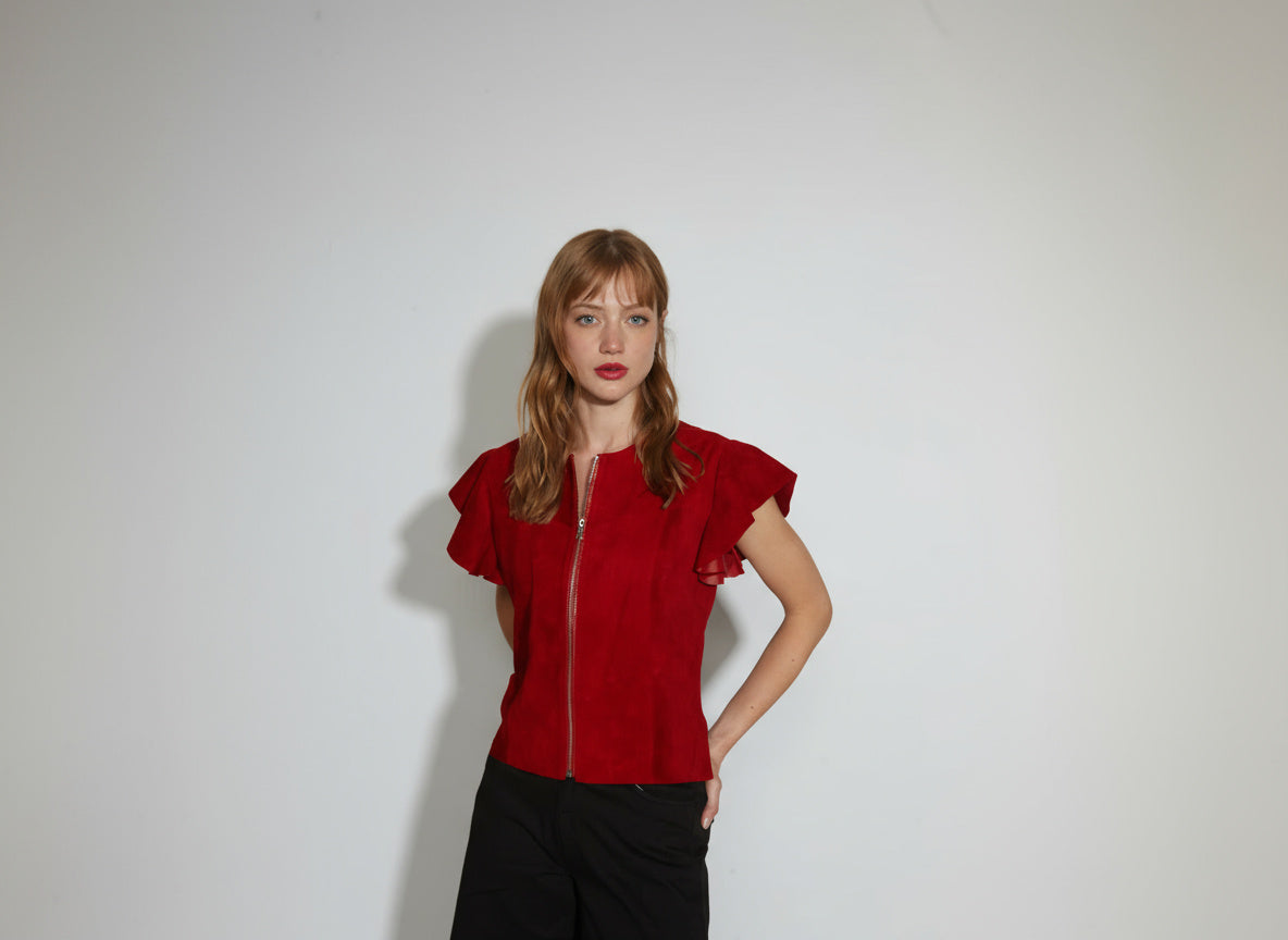 POLERA CUERO CIERRE MANGAS VUELO VERDE OLIVO
