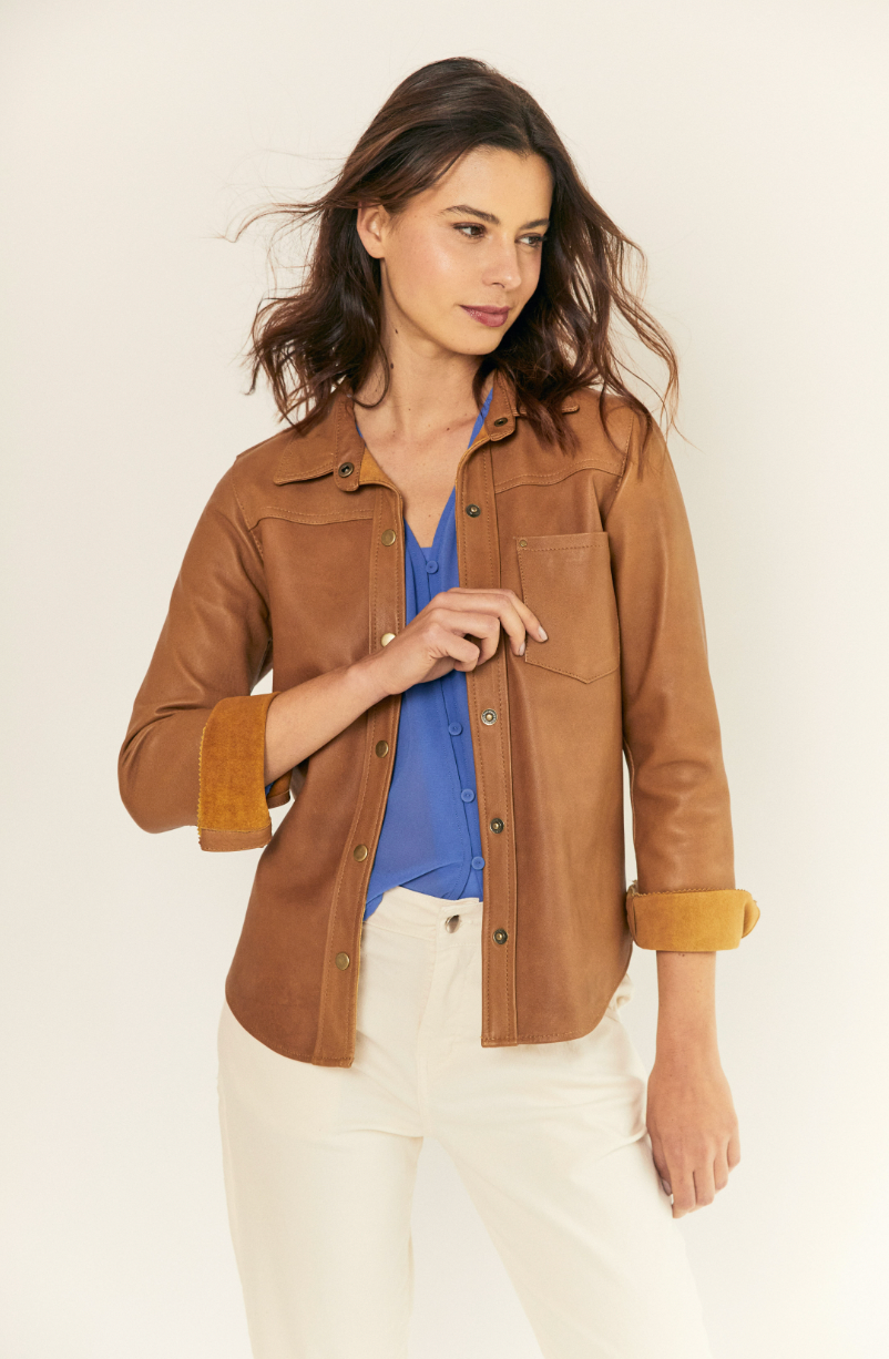 La Camisera Jimena Camel es una prenda elegante y versátil que combina diseño clásico con un corte prolongado, ideal para estilizar la silueta y aportar sofisticación. Confeccionada en 100% cuero auténtico, destaca por su calidad y terminaciones impecables. Su tono camel aporta calidez y atemporalidad, convirtiéndola en una pieza clave para un look moderno y distinguido. Perfecta para usar como sobrecamisa o prenda principal en distintas ocasiones.