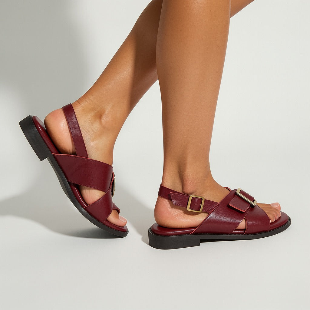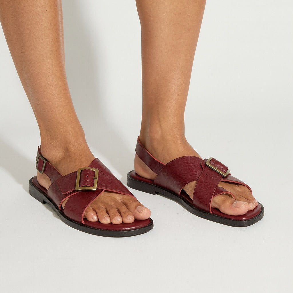 Chala 100% cuero con agarre un dedo y pretina cruzada, comodísimas y estilosas. Combínalas con nuestros vestidos y faldas Fernanda Macan.