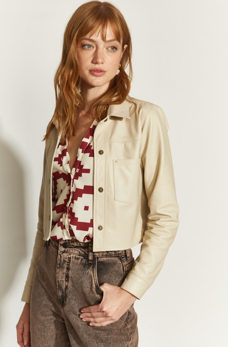Es una prenda elegante y atemporal que combina estilo y sofisticación. Confeccionada en 100% cuero, ofrece un calce impecable y una textura suave. Su diseño limpio y femenino la convierte en una pieza versátil, ideal para elevar cualquier look, desde el más casual hasta el más formal.