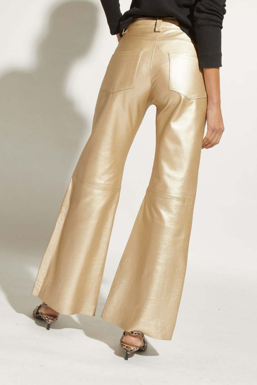 Exclusivo pantalón 100% cuero en color dorado. Ideal para el día a día, u ocasiones especiales. Combínalo con nuestros bodys o blusas de la colección Fernanda Macan y agrégale un toque especial y relajado con nuestras zapatillas de cuero o un look veraniego con nuestras sandalias.
