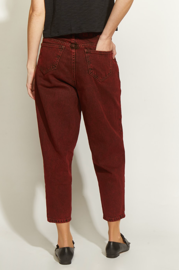 El pantalón jogger en tono burdeo gastado combina comodidad y estilo urbano con un diseño moderno y relajado.