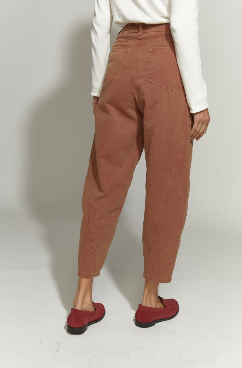 Pantalón 100% algodón con textura suave y estructura tipo denim en tono camel. De corte recto y calce cómodo, combina elegancia y funcionalidad en una prenda versátil. Diseño exclusivo Fernanda Macan.