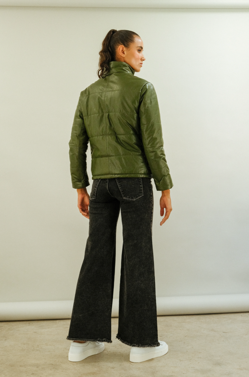 PARKA DE CUERO FLORENCIA VERDE OLIVA