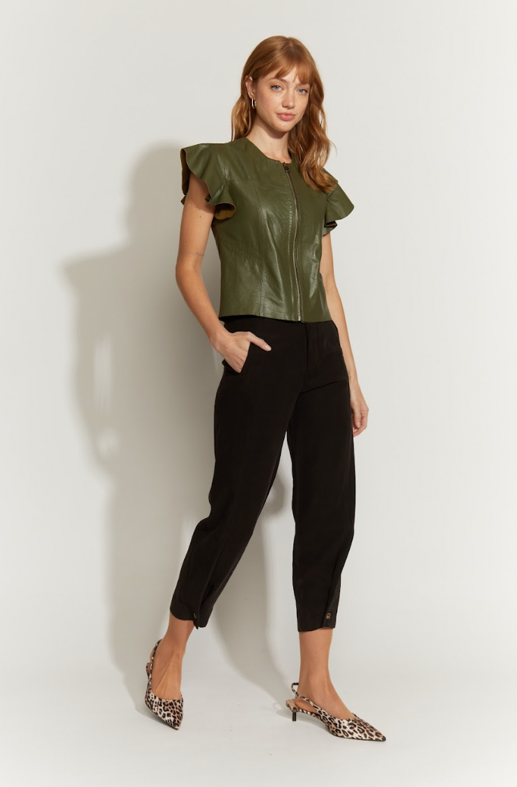 POLERA CUERO CIERRE MANGAS VUELO VERDE OLIVO