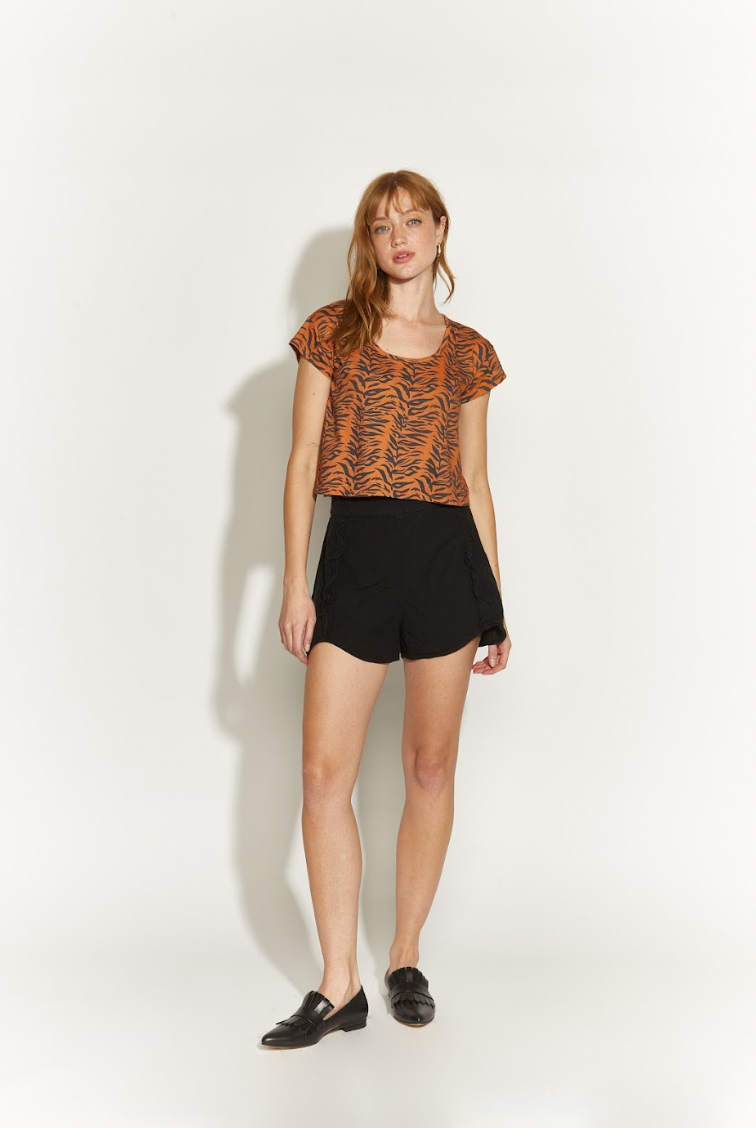 Polera 100% Cotton Flame manga corta con print amazonas. Hecho en Perú. Ideal para usarla de día y de noche. Diseño exclusivo Fernanda Macan.