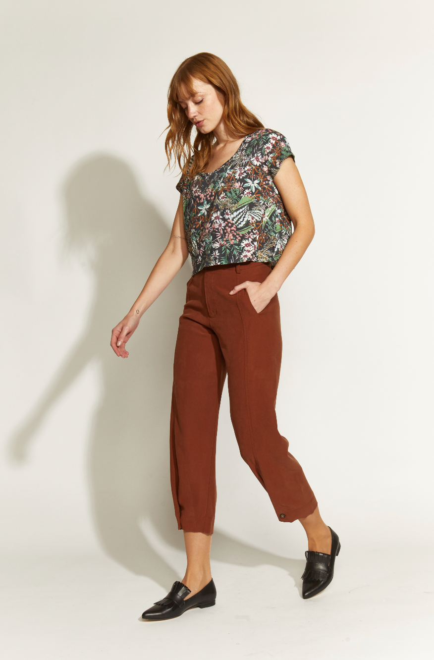Polera 100% Cotton Flame manga corta con print hojas. Hecho en Perú. Ideal para usarla de día y de noche. Diseño exclusivo Fernanda Macan.
