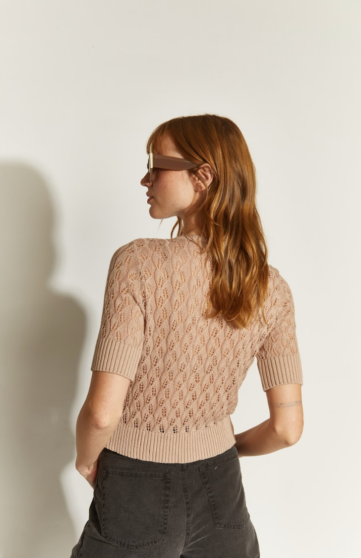 Polera 100% algodón tejido, de textura suave y calce relajado. Hecho en Chile. Ideal para combinar con jeans, cuero o pantalones amplios, aportando comodidad y elegancia. Diseño exclusivo Fernanda Macan.