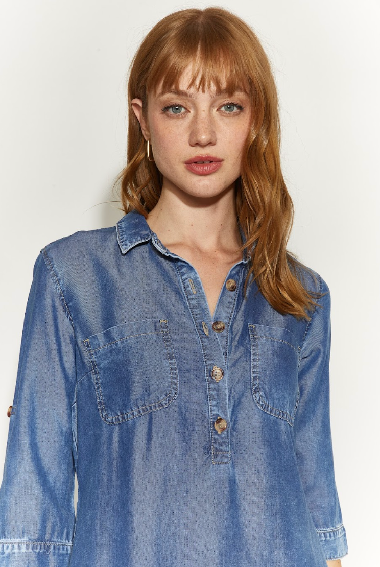 VESTIDO TENCEL 5 BOTONES 2 BOLSILLOS AZUL